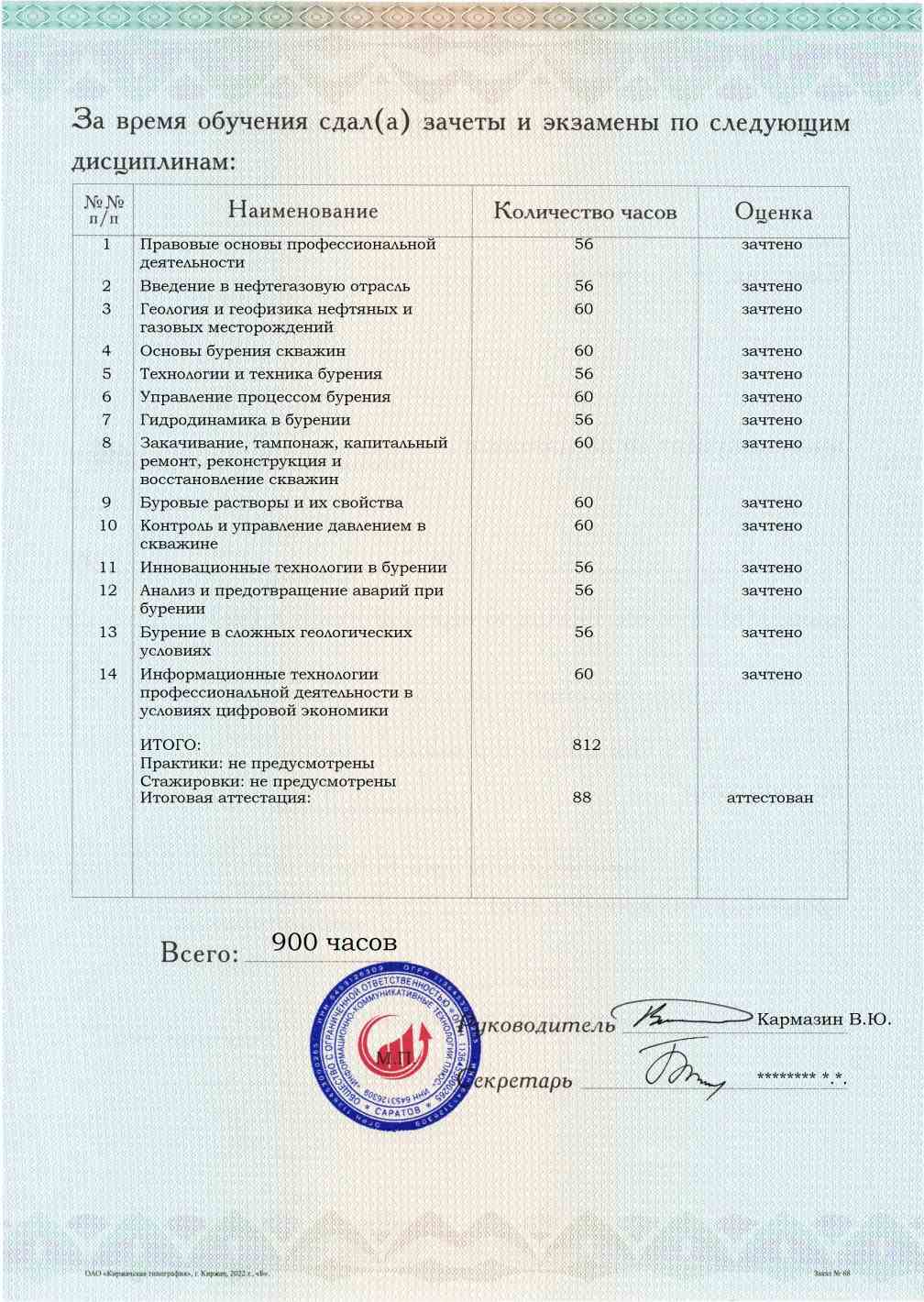 Курс профессиональной переподготовки по специальности «Бурение нефтяных и газовых скважин»