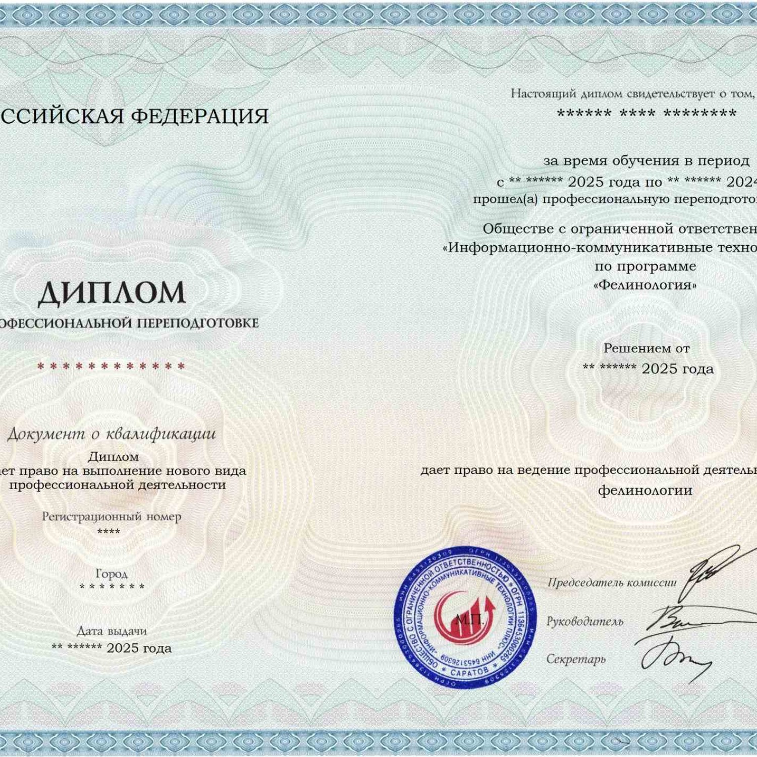 Проходя обучение у нас, Вы получаете знания, соответствующие всем государственным образовательным стандартам. Можете быть уверены в подлинности и соответствии Вашего диплома по специальности «Фелинология» всем Федеральным государственным образовательным стандартам (ФГОС).
