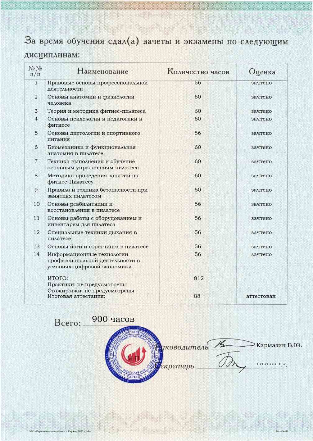 Проходя обучение у нас, Вы получаете знания, соответствующие всем государственным образовательным стандартам. Можете быть уверены в подлинности и соответствии Вашего диплома по специальности «Фитнес-Пилатес» всем Федеральным государственным образовательным стандартам (ФГОС).