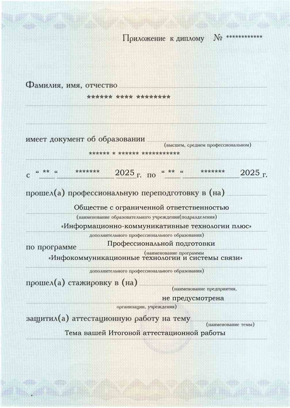 Курс профессиональной переподготовки по специальности «Инфокоммуникационные технологии и системы связи»