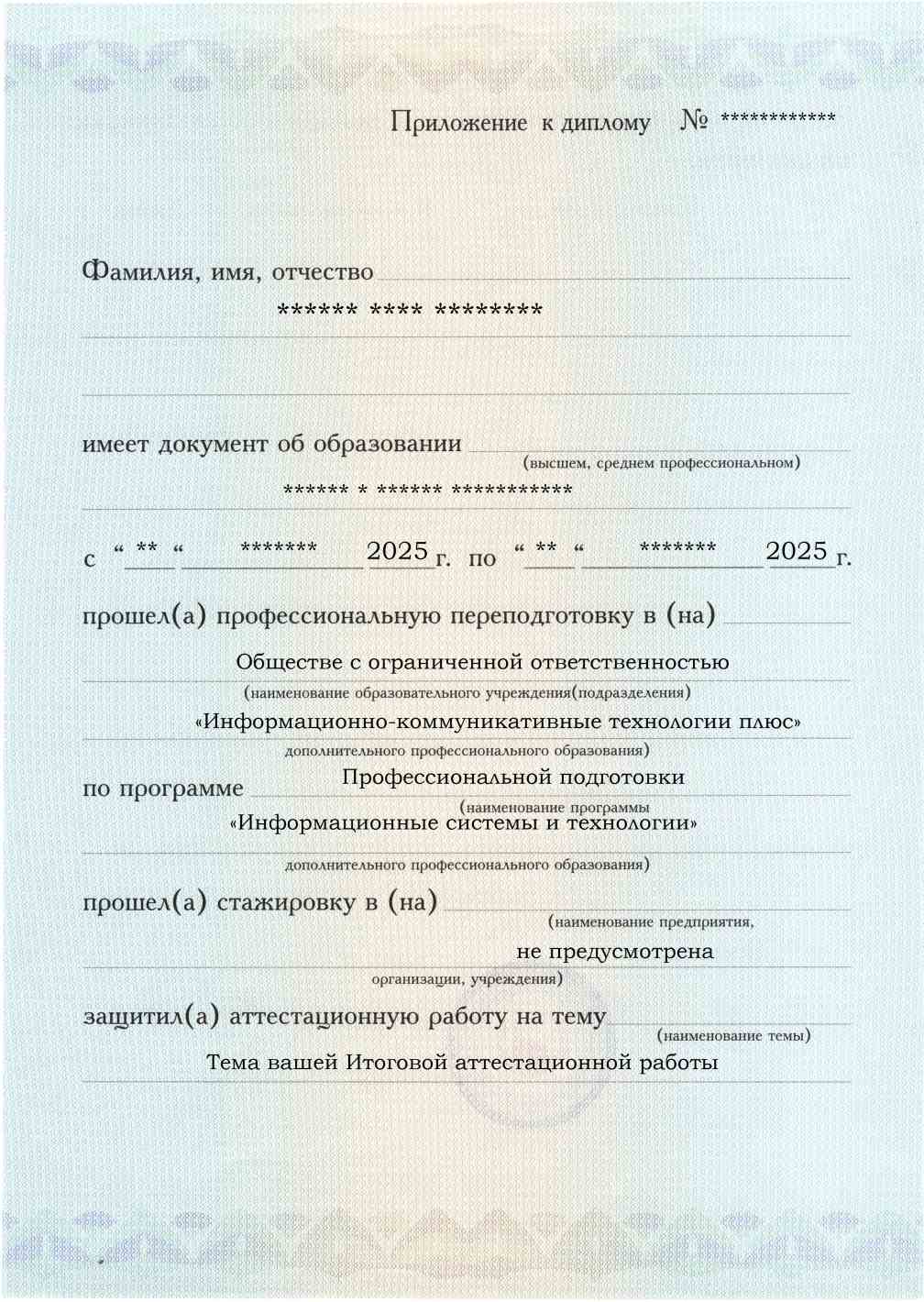- По окончании обучения вы получите диплом о профессиональной переподготовке, соответствующий установленным образцам.