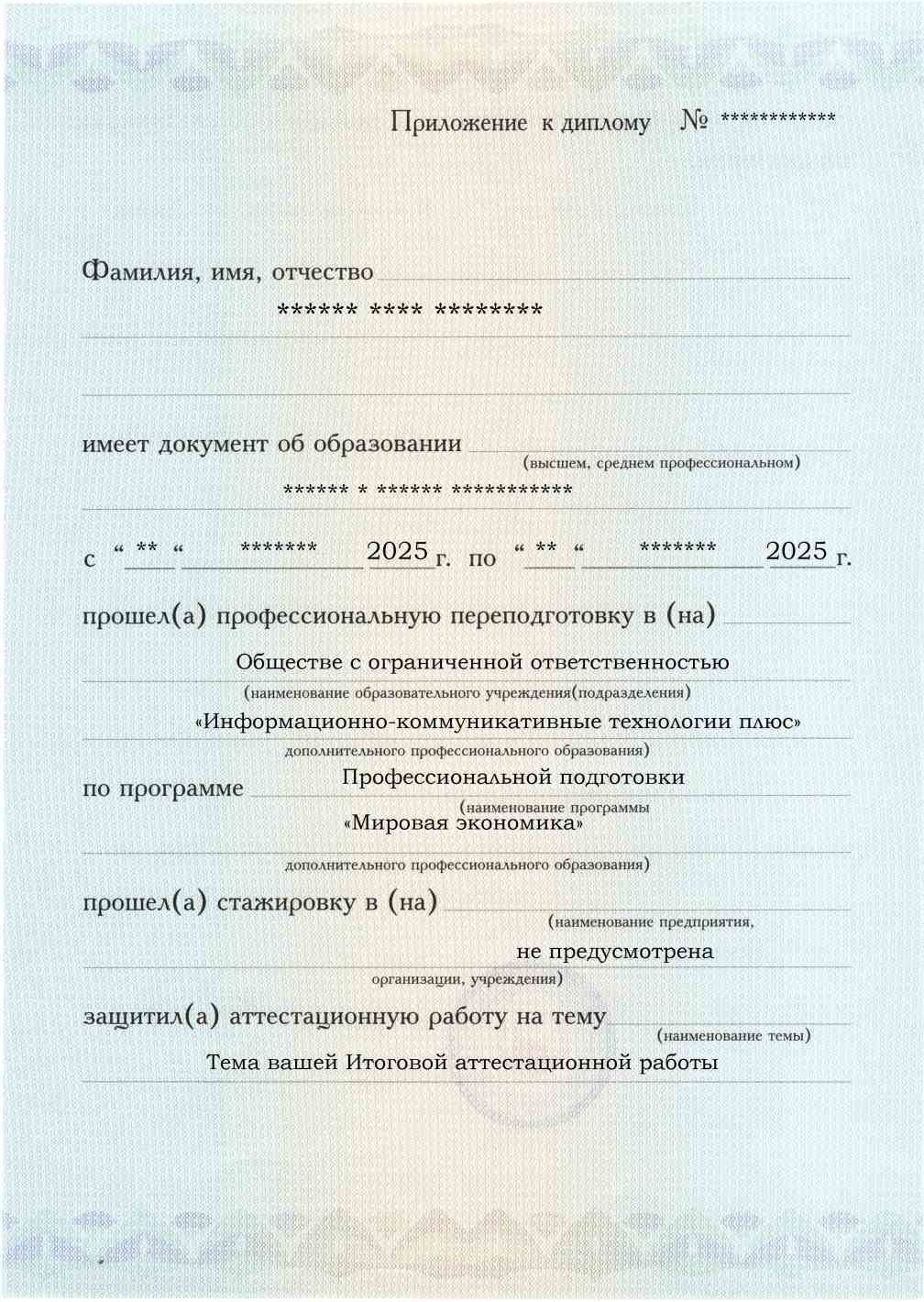 Курс профессиональной переподготовки по специальности «Мировая экономика»