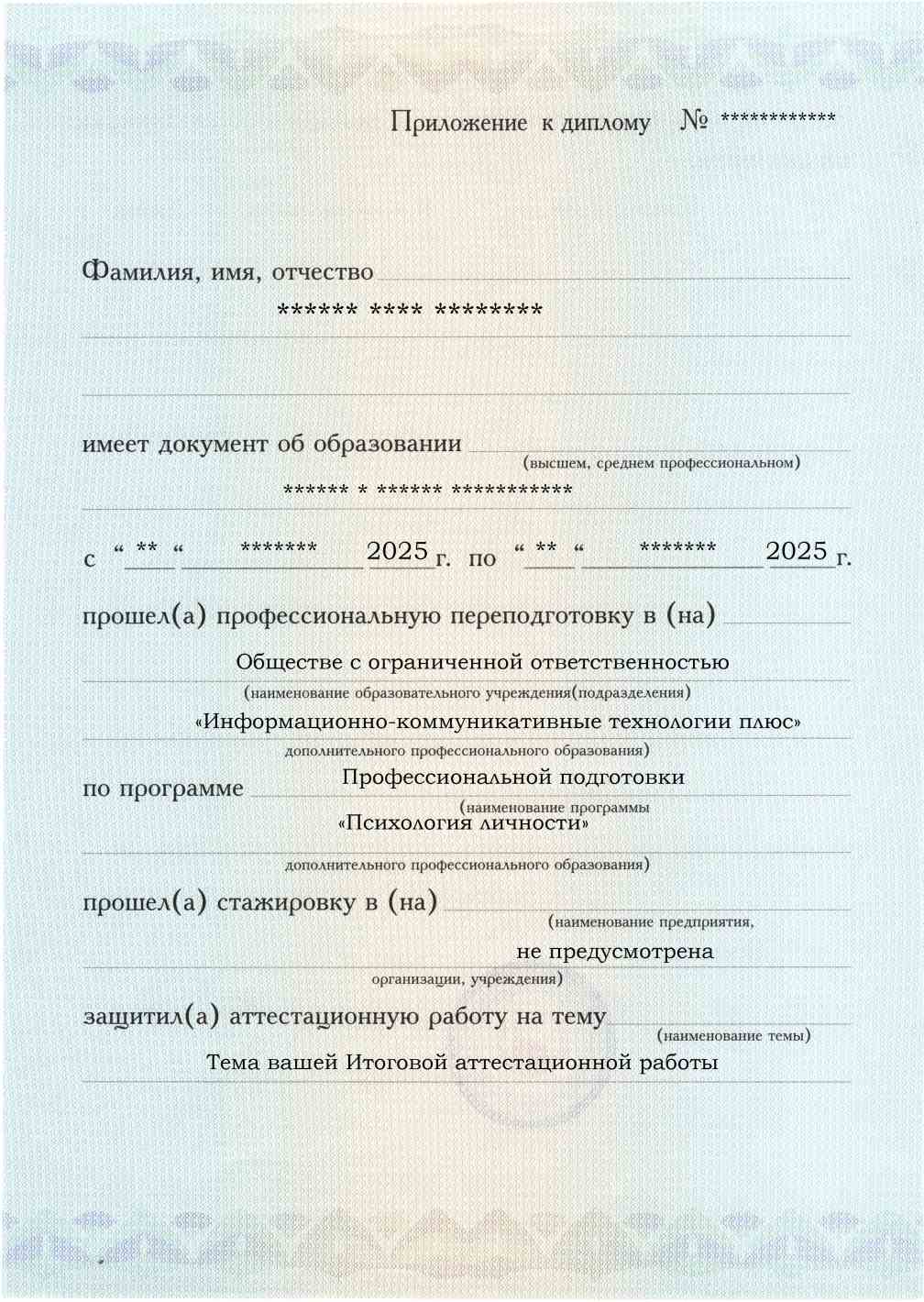 Курс профессиональной переподготовки по специальности «Психология личности»