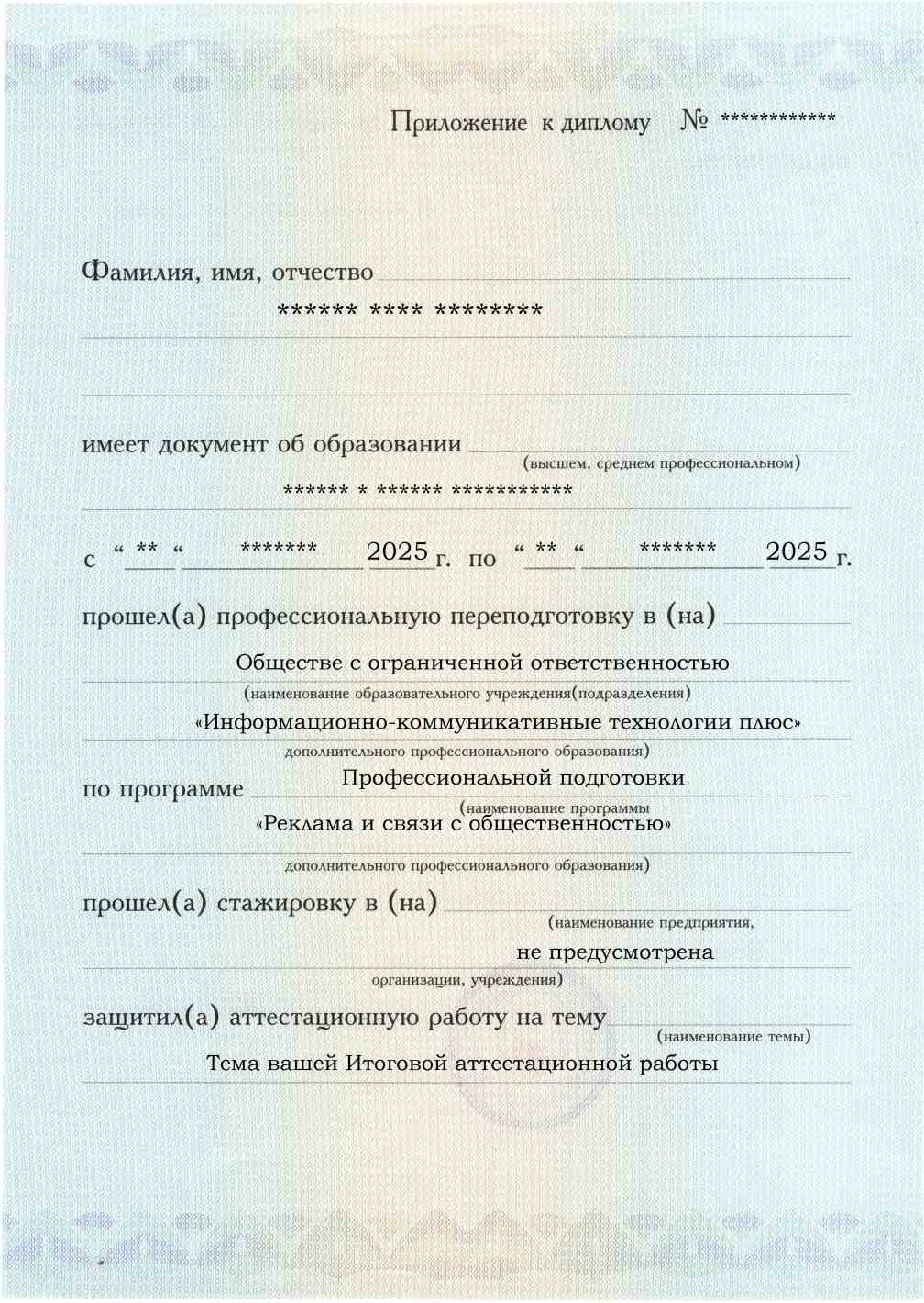 - По окончании обучения вы получите диплом о профессиональной переподготовке, соответствующий установленным образцам.