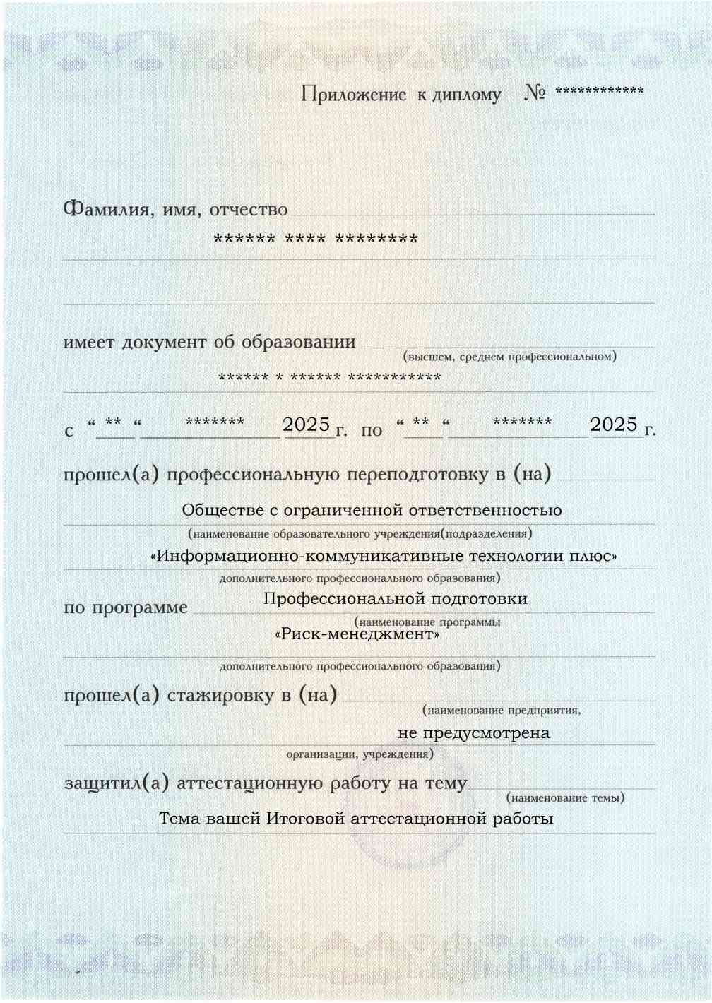 Курс профессиональной переподготовки по специальности «Риск-менеджмент»