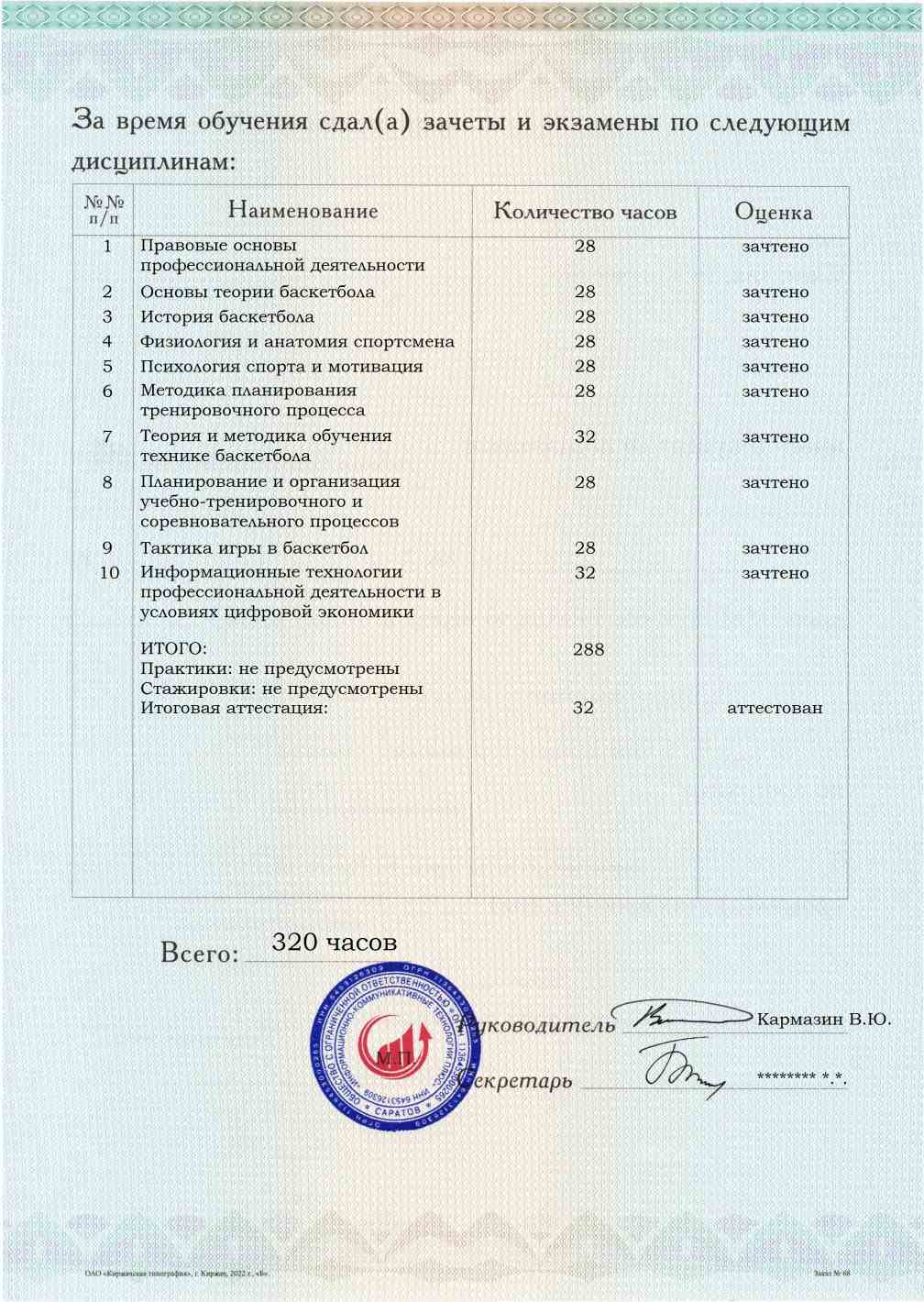 Курс профессиональной переподготовки по специальности «Тренер по баскетболу»