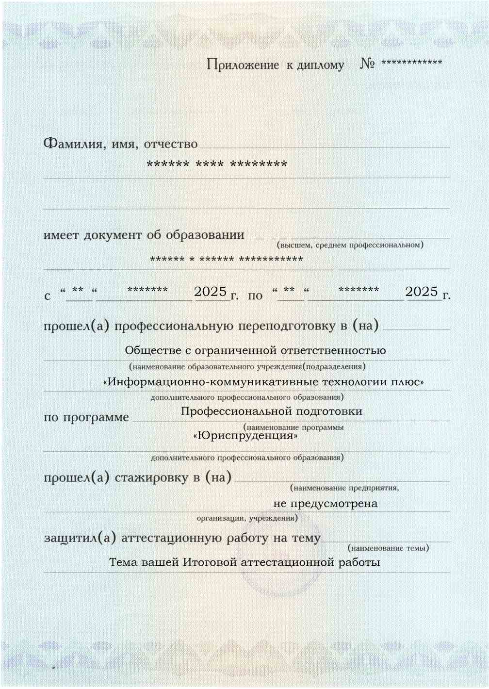 - По окончании обучения вы получите диплом о профессиональной переподготовке, соответствующий установленным образцам.